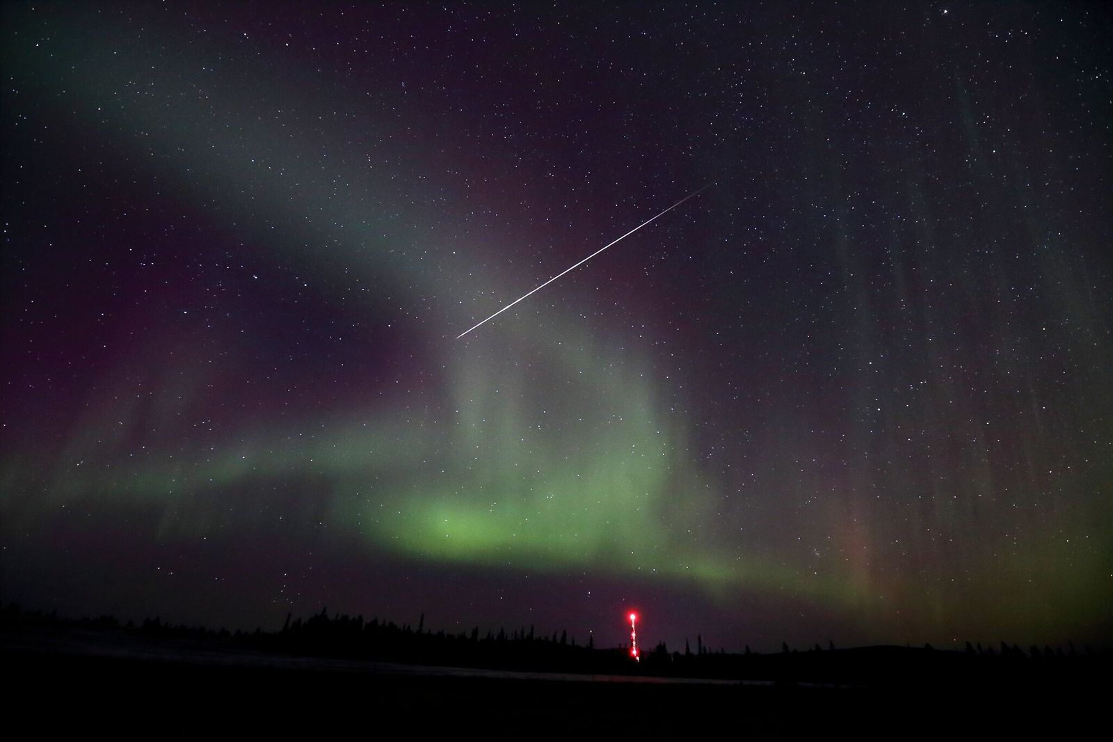 Un meteoro de la lluvia de estrellas Táuridas dejó una estela visible en una fotografía tomada por Neil Melville, ingeniero de la Agencia Espacial Europea, en Esrange, Suecia. La imagen, que también muestra una aurora boreal, fue capturada mientras se preparaban experimentos en microgravedad cerca del Círculo Polar Ártico.